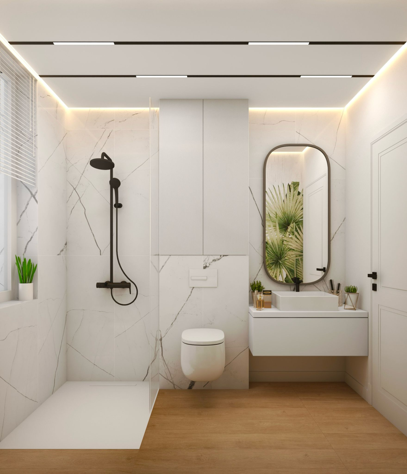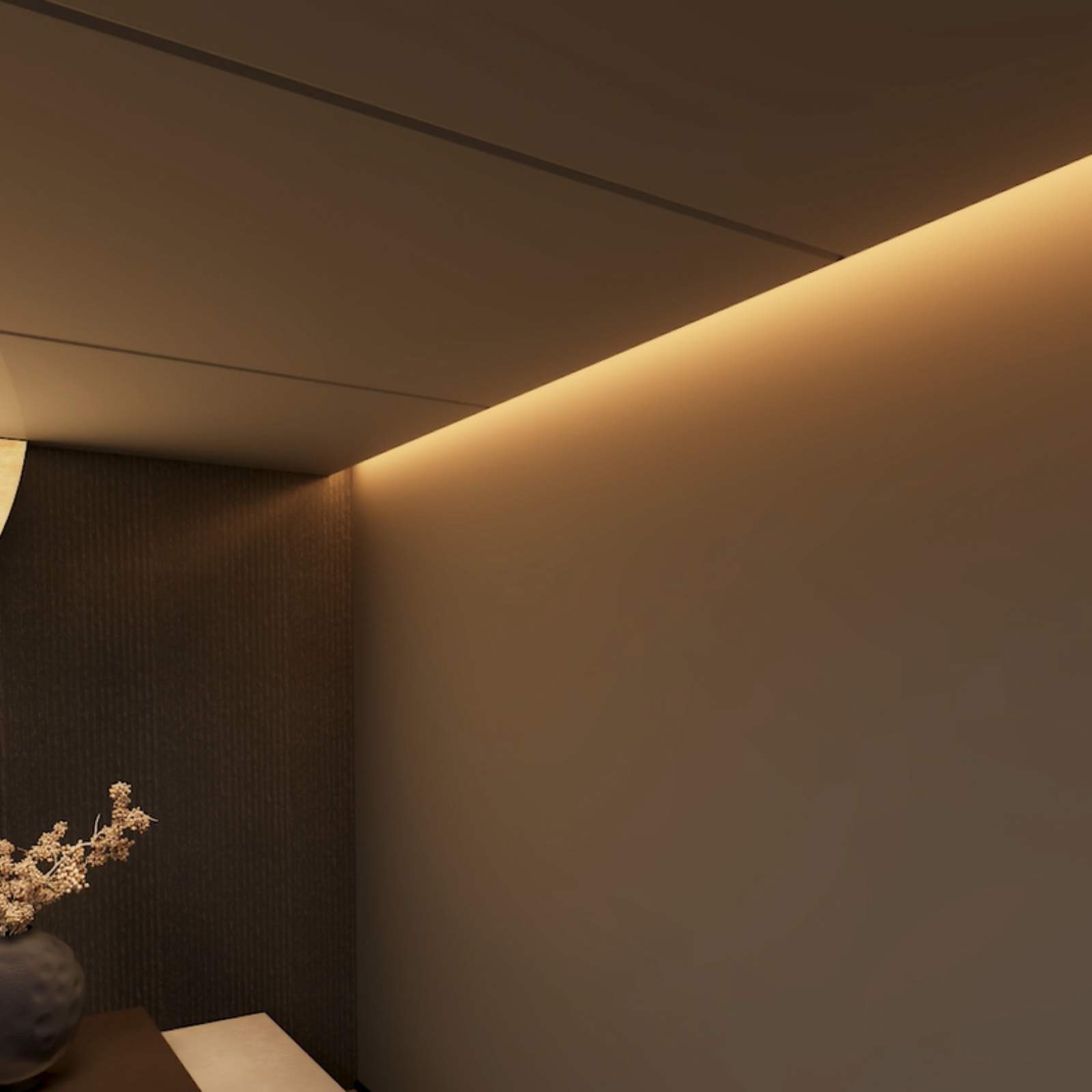 Permite crearea unui spatiu de separatie intre perete si tavan, oferind un efect vizual modern si posibilitatea integrarii unei benzi LED pentru lumina ambientala.