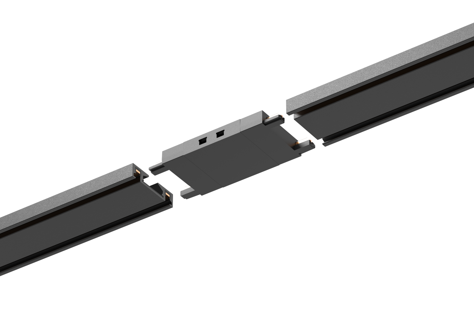 Conector de imbinare utilizat pentru conectarea sinelor magnetice Slim 6mm, permitand realizarea diferitelor configuratii de montaj in cadrul sistemului de iluminat.